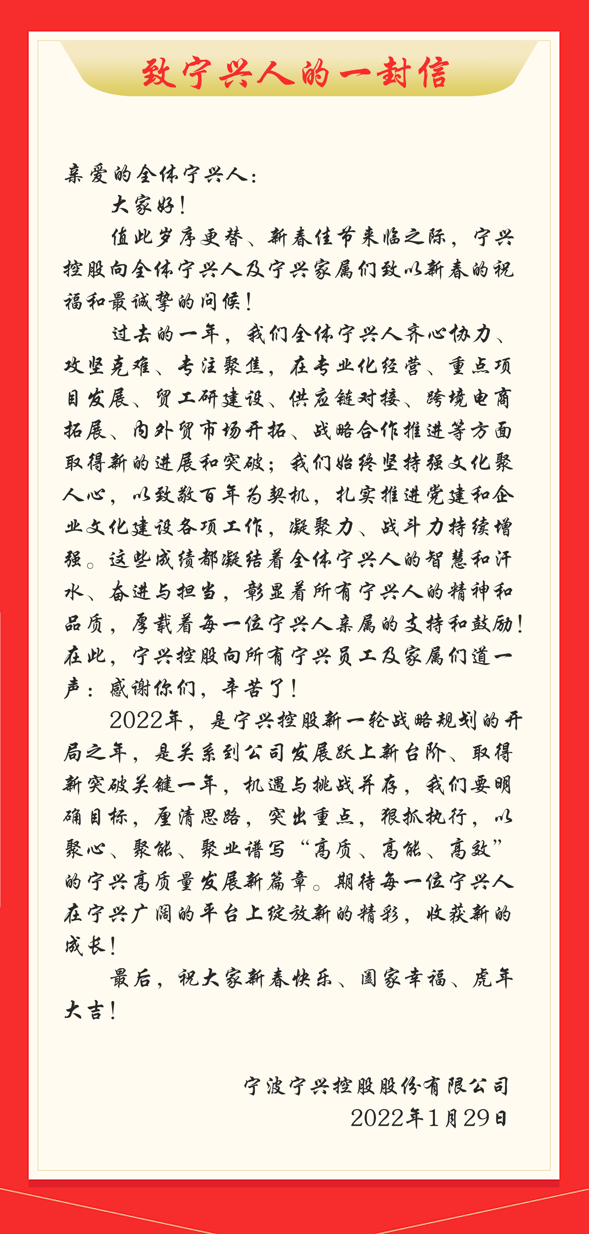 Dear Ningshing members:On the occasion of the coming of the Spring Festival of Tiger year, Ningshing... -