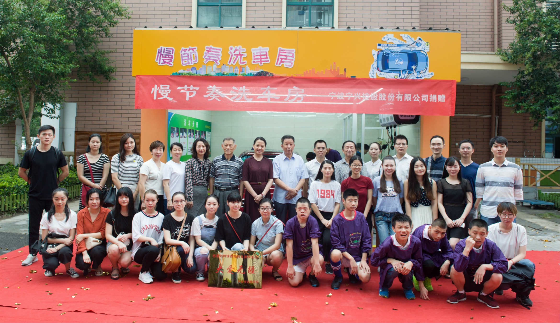 9月27日,作为宁兴控股“大爱宁兴,你我同行”慈善公益系列活动的重要内容之一,由宁兴控股向市达敏学校捐赠的“慢节奏洗车房”揭牌仪式在达敏学校举行。宁波市慈善总会副会长项性平、副秘书长蔡怀书、郭天放,宁兴控股党委书记、副董事长高屏以及宁兴控股20多名青年志愿者代表和达敏学校师生一起参加了仪式。达敏学校是宁波全日制智障儿童特殊教育学校。宁兴控股资助“慢节奏爱心洗车房”,并将通过所属众兴汽车公司业务所长,定期提供洗车指导和帮助,为这群特殊的孩子们学会力所能及的生存技能出一份力,公司团员青年们将组织与达敏孩子们的经常性互动关爱。