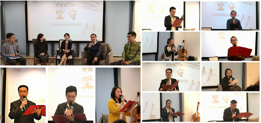 活动过程中,张旦恒、周默、翁敏敏等11名来自各公司的朗读者围绕“坚守”主题,朗诵了《坚持》、《心容诸子,坚守责任》、《品质》等优秀作品,并分享了这些作品带来的生活和工作的感悟和激励,引起现场强烈共鸣。吴雪泳、杨喆芳、沈月红、徐悦来等同台交流,分享关于阅读和坚守的故事,鼓励宁兴青年坚持阅读,坚守初心。