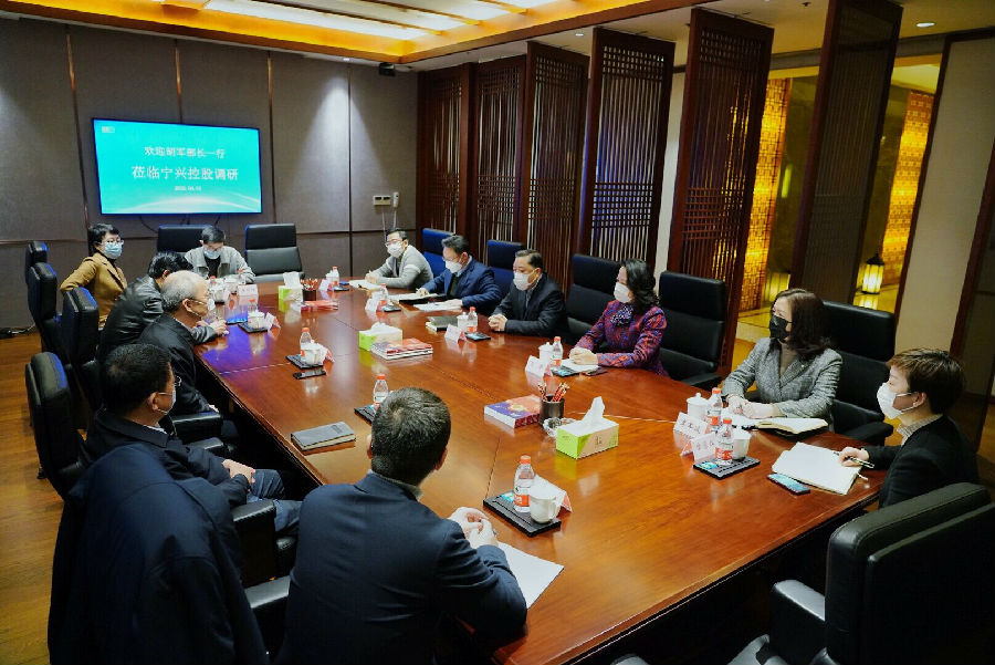 2020年4月1日,宁波市委常委、统战部部长胡军一行到宁兴控股调研,深入了解疫情对公司外贸的影响及相关建议要求。宁兴控股董事长吴以刚、副董事长党委书记高屏、总裁黄永增等参加汇报调研。