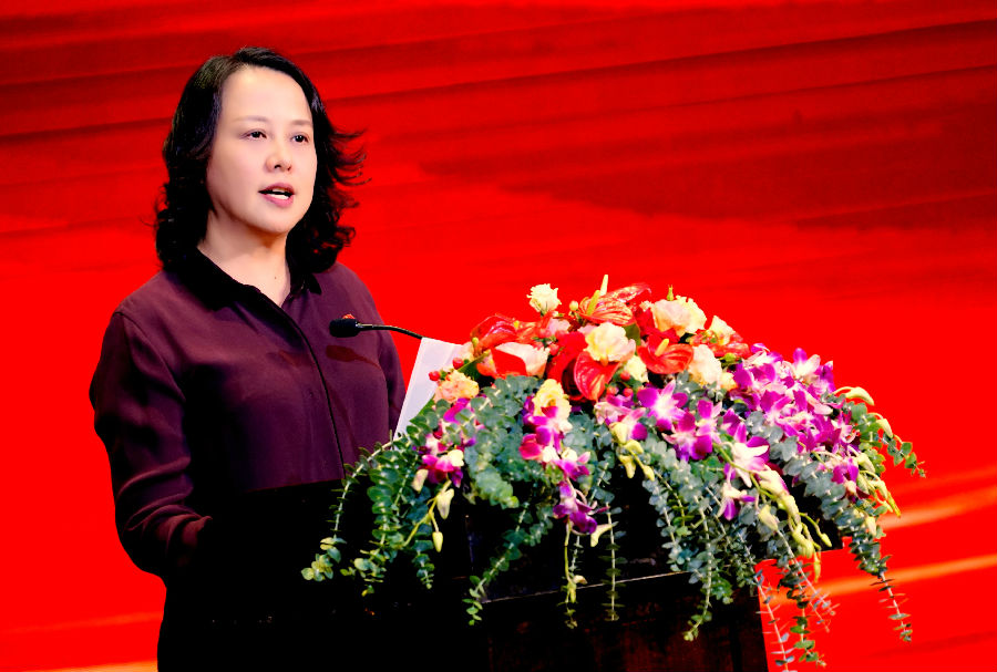 最后,宁兴控股党委书记、副董事长高屏同志作《坚定信念 拼搏奉献 担当使命》讲话,她强调党的100年的伟大历程证明没有共产党,就没有新中国,只有在中国共产党的领导下,才能创造人民的幸福生活和美好未来,才能实现中华民族的伟大复兴。她指出,宁兴控股党委始终加强党的建设,坚持“党建也是生产力”的理念,聚焦公司创新与发展,将党的建设融入到公司生产经营、团队成长和企业文化建设中,做到党建工作与生产经营管理深度融合、同频共振,同向发力,其中更是涌现出了一批表现突出、有引领示范作用的省、市、行业的先进集体和个人。她要求,全体党员要坚定信念,牢记使命担当,把理想信念和对党的忠诚铭记在心中,落实在行动上;要拼搏奉献,立足本职,苦干实干;各级党组织要加强自身建设,把党建与经营、管理、安全、文化等有机结合,切实提升组织的创造力、凝聚力和战斗力。
