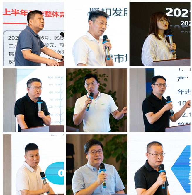 黄永增总裁作题为《咬定目标 突出重点 卯足干劲 奋力前行》的半年度工作报告,围绕内外贸业务经营、重点项目推进、研发技术成效、经营流动性改善与职能建设等方面总结了上半年总体经营工作,既肯定成绩也分析问题;解读和分析了下半年外贸出口、跨境电商、大宗商品价格、货币政策及人民币汇率等形势变化和趋势;重点部署下半年工作任务和要求,强调各公司要聚焦年度目标,加强产业形势研判、精准施策,加快重点项目推进进度,加强流动性常态化管理,加强各层面战略合作,强化职能管理,凝聚共识,汇聚合力,全力以赴实现公司年度目标任务。