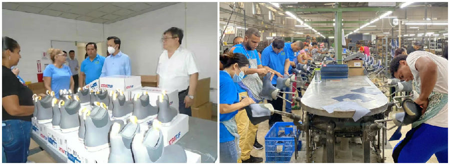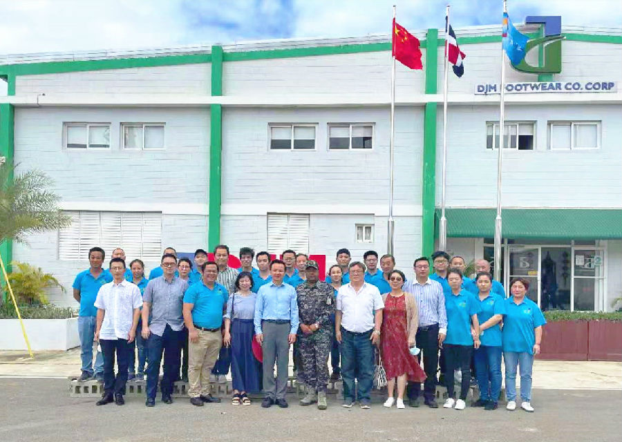 张润大使一行参观了DJM生产车间,并询问生产和订单情况。听闻现在产量和质量都有大幅度提升时,张润大使感慨道:“我2年前来参观DJM工厂时,这里还只有2条流水线,每天的日产量不到1000双。2年后的今天再度来参观时,DJM已经拥有了5条流水线,日产量达到3500双,同时质量也有显著的提升。看到我们国家驻外的中资企业能在短时间内取得令人满意的成就,作为中国驻多米尼加的大使,我也感到非常欣慰和自豪!”张润大使的高度肯定,使在场人员备受鼓舞,现场响起阵阵热烈掌声。