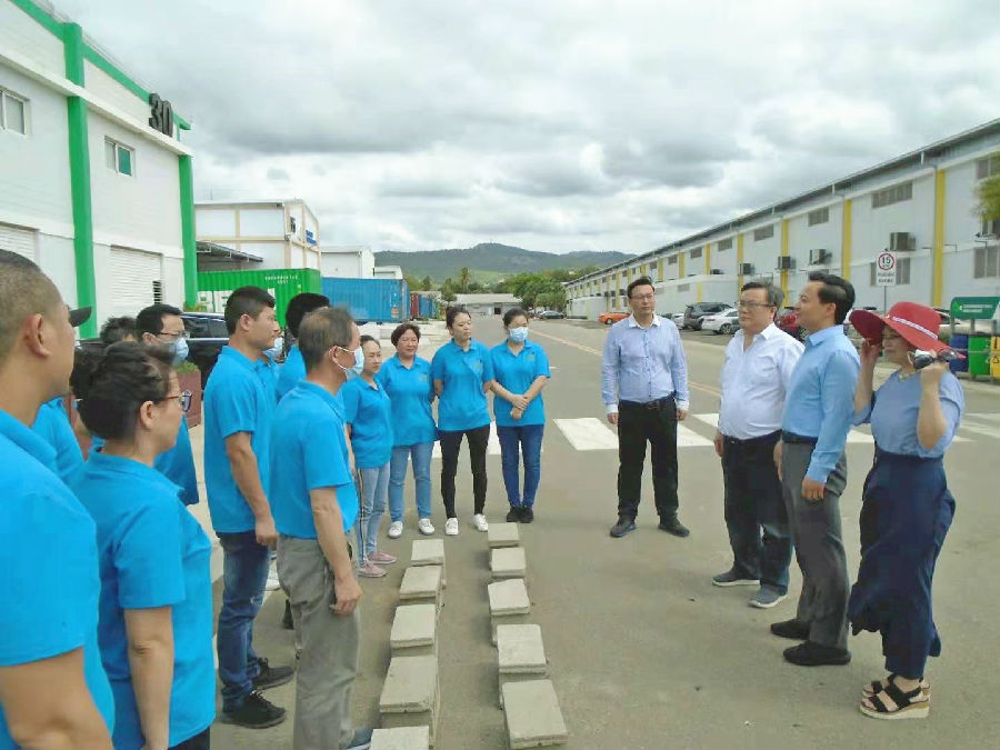 会议结束后,张润大使接见了DJM全体中方员工,与大家亲切握手,表达问候,致以鼓励。张润大使表示,在全球疫情大背景下,中方员工身处异国他乡,依然坚守在各自的岗位上,证明了我们华夏儿女在任何条件下都具有不畏艰苦、勇于开拓的拼搏精神。“你们是中国人的骄傲!”他关照大家在疫情做好防护,注意身体。他鼓励员工做好“先苦后甜”的思想准备,并引用苏轼的诗句“此心安处是吾乡”,激励大家将多米尼加当成自己家乡来建设,并表示有困难找大使馆,要永远相信祖国母亲!全体25名中方员工对张润大使的深切关怀致以热烈的掌声,表示将牢记使命,兢兢业业,顽强拼搏,全力打造世界一流的鞋业生产基地,更好地展现中国质量、中国速度和中国形象,为促进多米尼加地区的经济发展做出贡献。