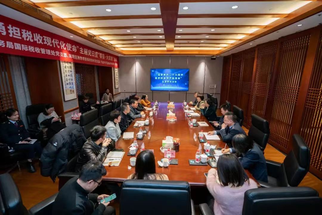 会上,与会人员集中听取了全国工人先锋号单位——海曙区税务局望春税务所代表作二十大精神的宣讲报告。在“税收现代化服务中国式现代化”主题调研活动上,宁兴控股党员代表就跨境涉外业务、国内外供应商税务风险甄别等具体问题现场请教、交流互动。