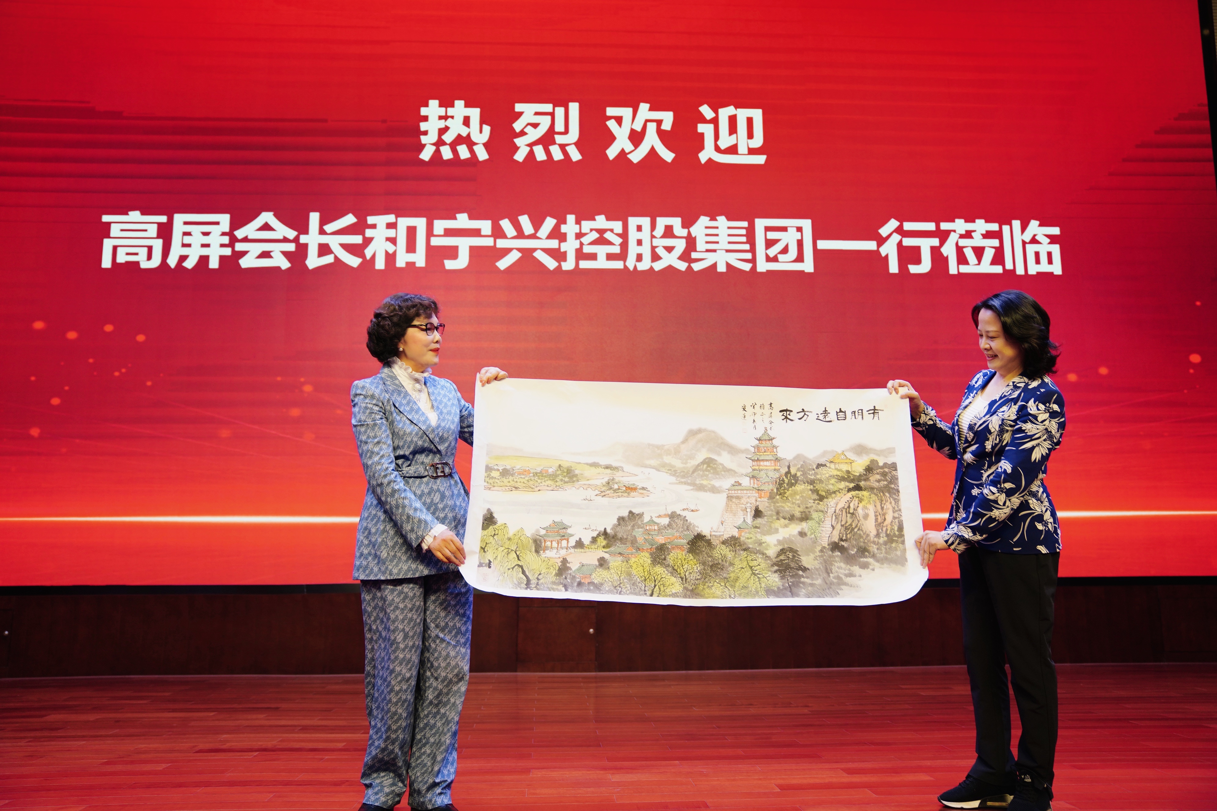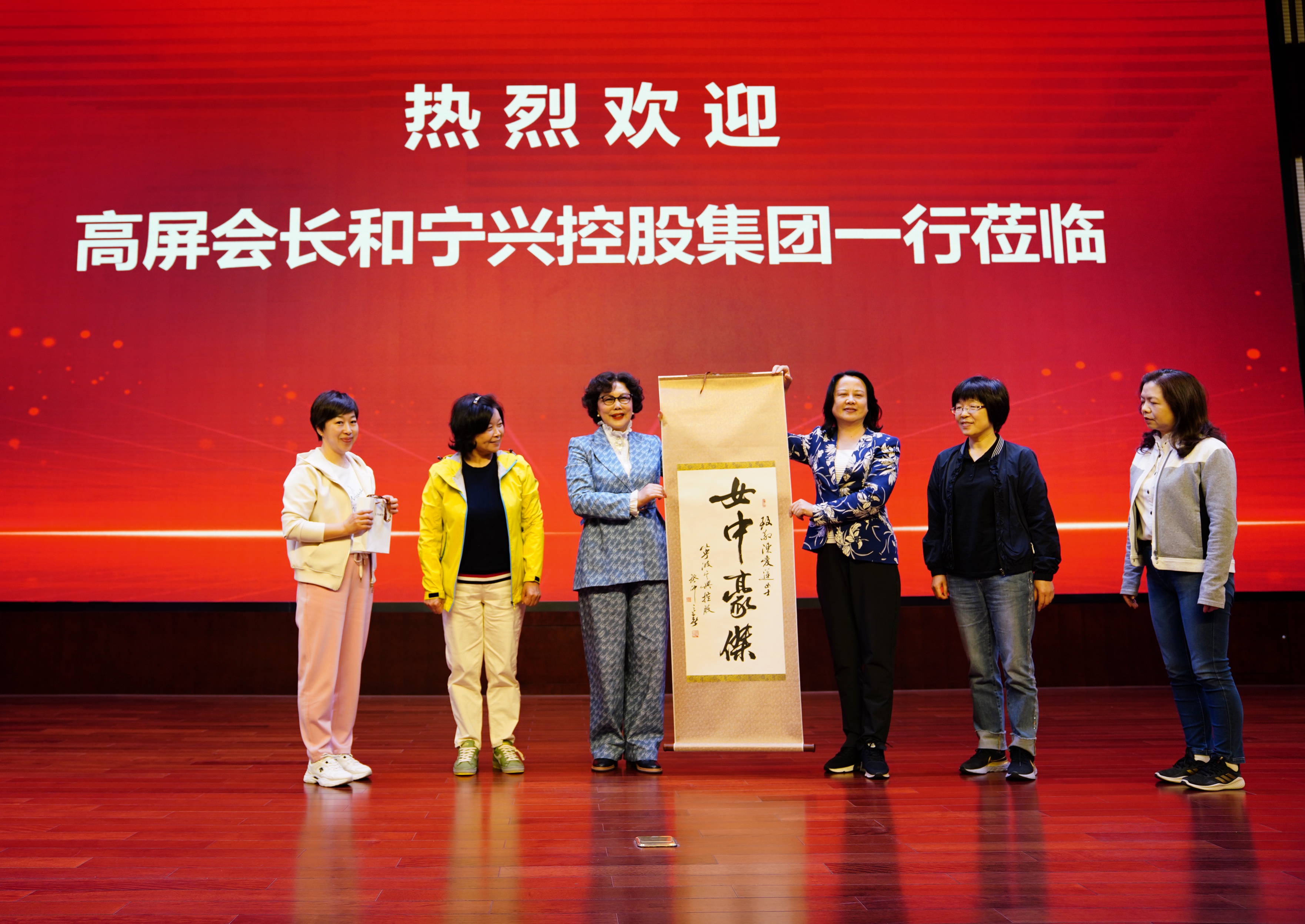 宁兴控股副董事长、党委书记高屏感谢陈爱莲主席精彩真诚的分享。她表示陈主席是中国创业女性的杰出代表,她爱党爱国的信念,勇立潮头的胆略,坚韧不拔的毅力,不断创新的理念,以及博大的产业报国、奉献社会情怀,值得所有女性学习。特别是陈主席“创业是快乐的,生活是幸福的,追求是艺术的”三点人生感悟,值得细细品味。同时,她对全体女员工提出了三点希望:要有格局和梦想,保持定力和向上的生长力;要坚守和坚持,永葆初心、笃行不怠;要有感恩之心珍惜当下。她邀请陈主席有空到宁兴做客,并敬赠“女中豪杰”书法作品,送上宁波生产的G20峰会元首笔,寓意陈主席继续书写着自己的精彩人生。