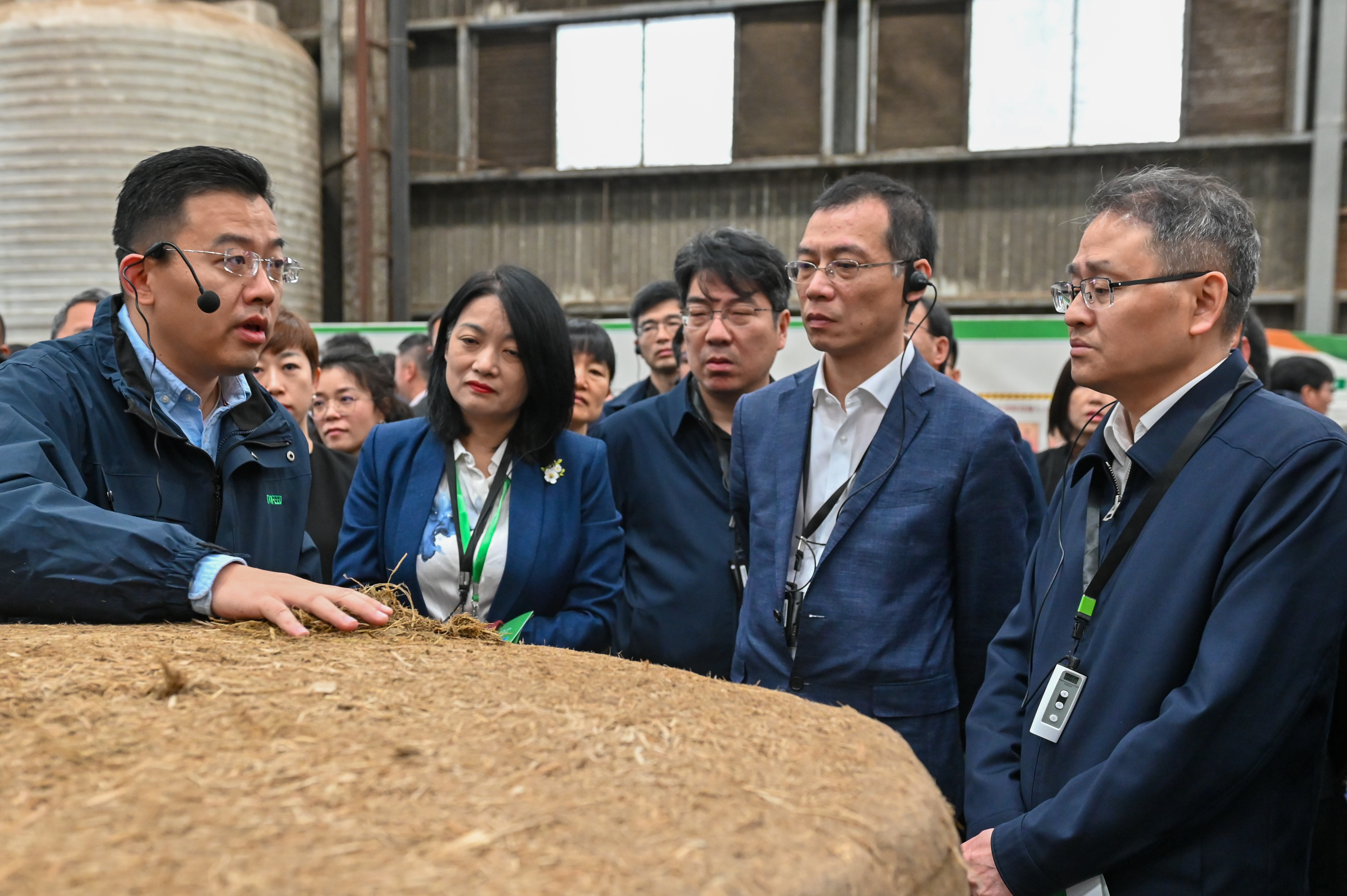 4月13日,全省“秸秆变肉”暨秸秆饲料化现场推进会在慈溪召开。会议期间,浙江省农业农村厅党组成员、省畜牧农机发展中心主任骆健民、厅有关处室单位负责人、各地市级、县(市)区农业农村局主要负责人以及参加全省“秸秆变肉”暨秸秆饲料化现场推进会的各大科研院所的专家和企业家代表等120多位嘉宾,专程安排走进宁兴控股下属公司宁兴涌优参观考察,宁兴控股董事长吴以刚等亲临现场。