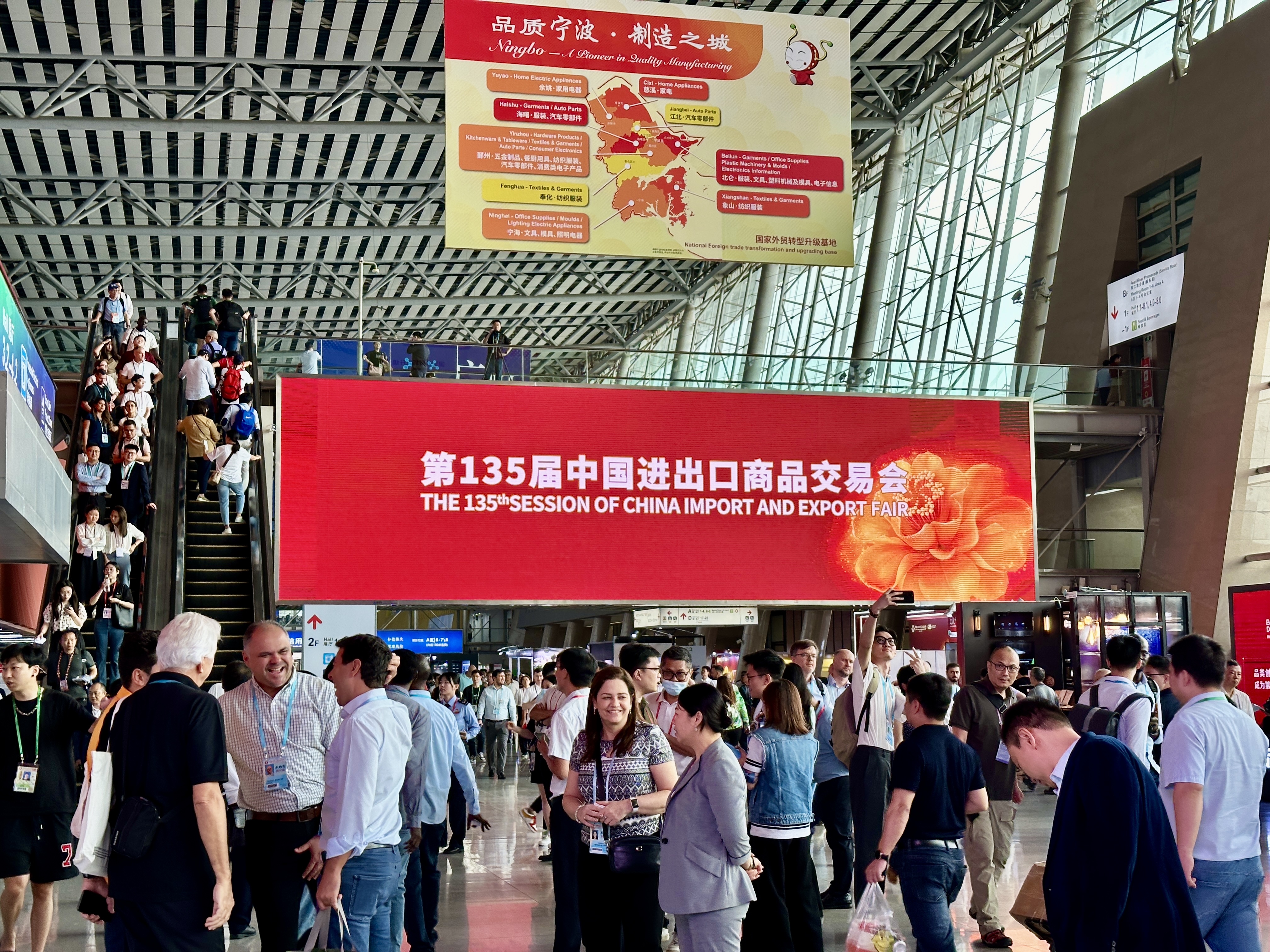 5月5日,第135届中国进出口商品交易会于在广州落幕。本届广交会历时15天、分三期举行,吸引了来自215个国家和地区的24.6万名境外采购商线下参会,比上届增长24.5%,线上线下出口成交均呈增长态势。宁兴控股旗下三家专业外贸公司——宁兴贸易集团、宁兴金海、宁兴恒骐派出近70名业务骨干,设立25个展位,展出1000余件商品,涵盖卫浴设备、男女服装、家具用品、装饰品、建材特装、小家电等多个领域。意向订单总额近600万美金,其中“一带一路”沿线国家采购商占比显著增加。