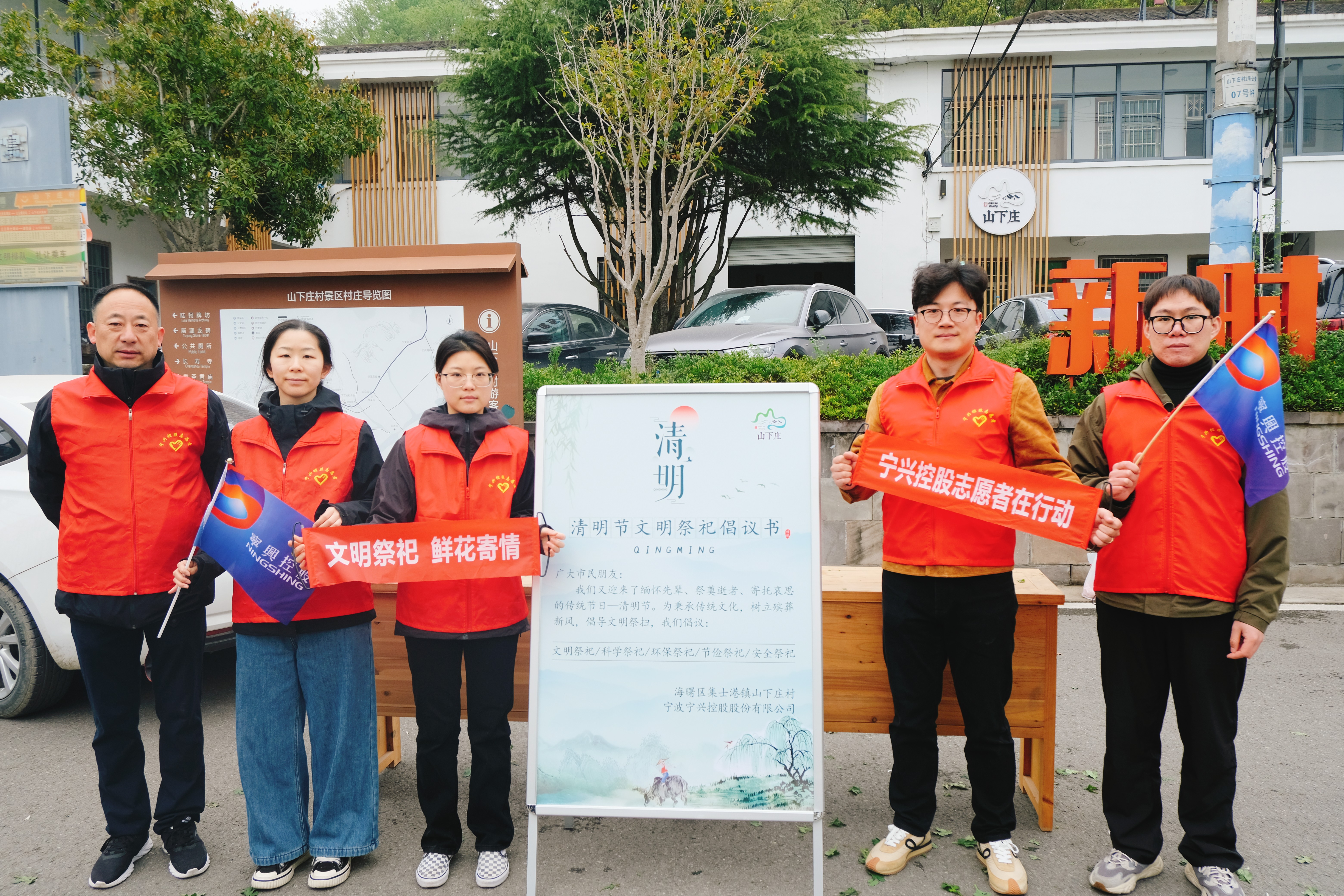 3月30日上午,宁兴控股团委携手文明结对多年的海曙区集士港镇山下庄村委会,开展了一场“文明祭祀 鲜花寄情”志愿者活动,用实际行动倡导文明祭祀新风,为乡村文明建设注入新活力。