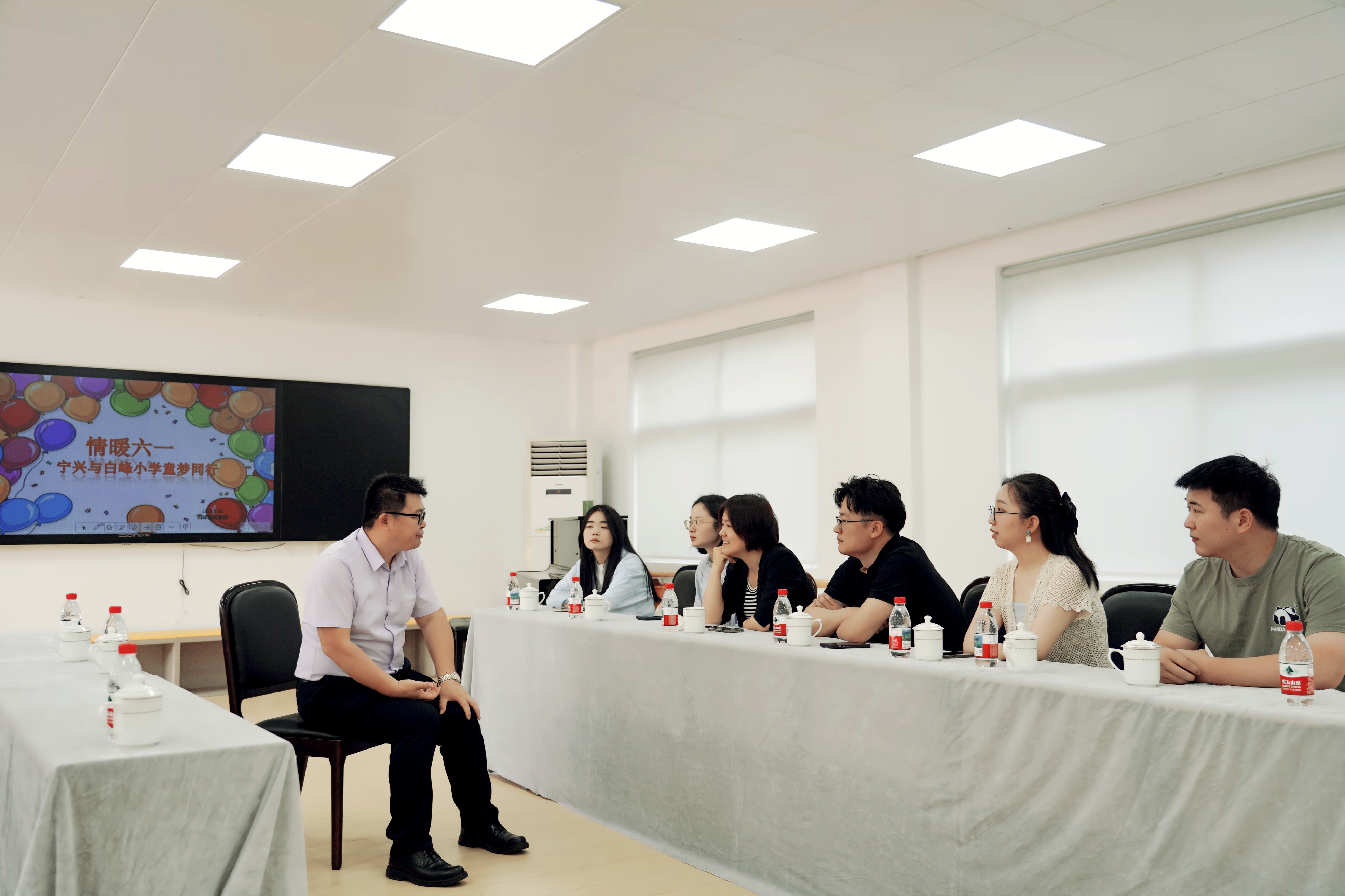 白峰教育集团石如军校长向青年代表们介绍了学校近年来在教学创新、学生发展、师资培养等方面取得的成果和未来的发展规划,陪同大家一同欣赏了精彩纷呈的六一文艺演出,参观了在北仑银泰城举办的“撇捺育成长 立人润华章--白峰小学艺术教育成果展”。宁兴控股团委书记仇松在活动中转达了宁兴控股对白峰小学全体师生的亲切关怀和节日祝福,表示公司将始终如一地支持和守护每一位孩子的快乐童年,希望白峰教育集团越办越好,并代表公司为孩子们送上精心准备的学习用品。宁兴的青年代表们深刻感受到学校对孩子们全面发展的重视和用心,对孩子们未来充满希望和期待。