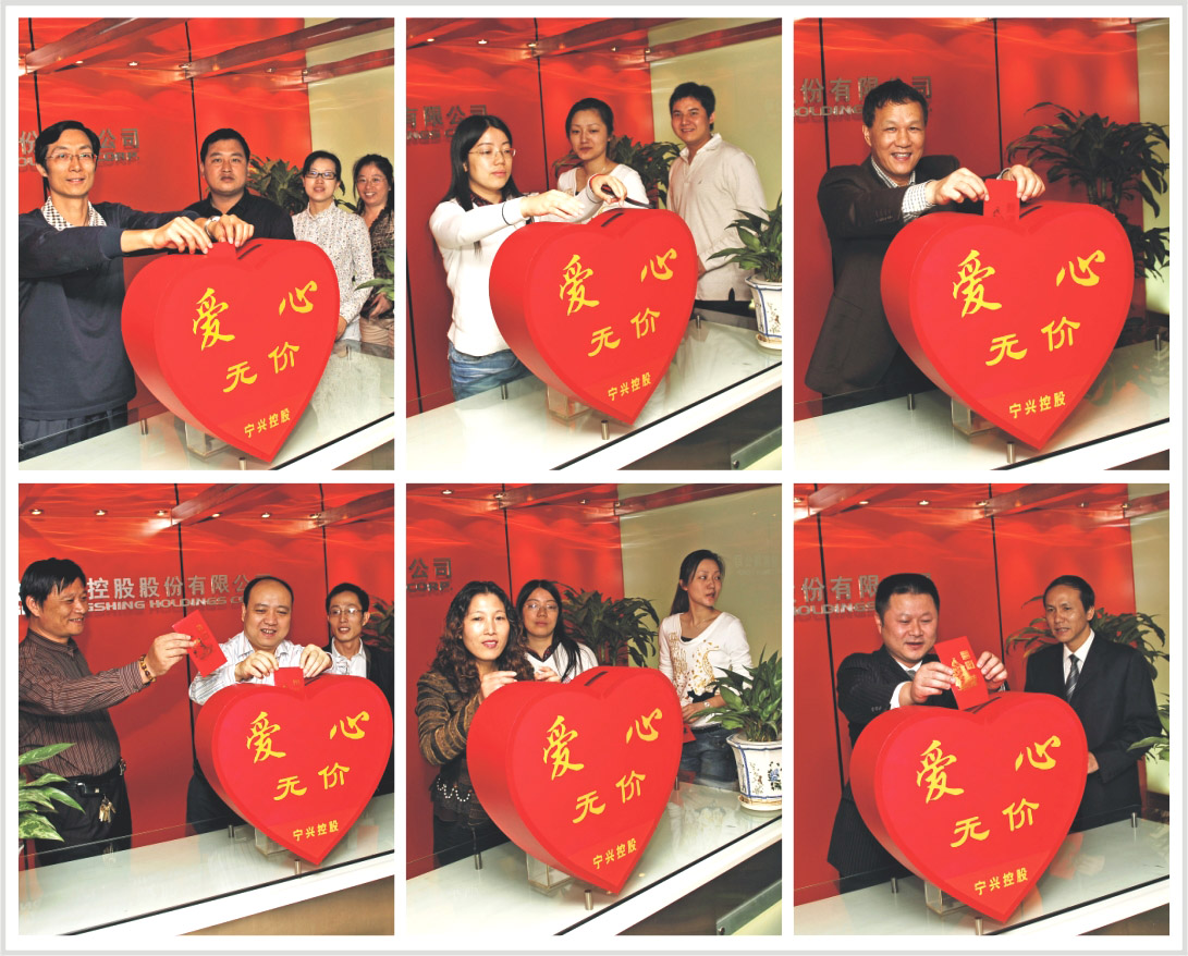 为进一步弘扬宁兴文化,强化员工的社会责任感,实践“为社会创造效益”的企业宗旨,控股公司于日前组织开展 “慈善一日捐”活动。参加本次捐赠的宁兴 员工达470多人,共收到捐赠款3万1千多元。