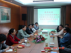 应江苏吴中集团董事长朱天晓先生的邀请,宁兴控股董事长、总裁吴以刚先生率公司高级管理人员一行八人于2007年10月27日访问江苏吴中集团,与吴中集团董事长朱天晓、总经理葛健等公司管理层,就企业发展中共同... -