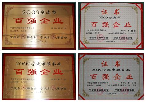 热烈祝贺宁兴控股连续第四年入选宁波市百强企业、宁波市服务业百强企业!2009-08-03