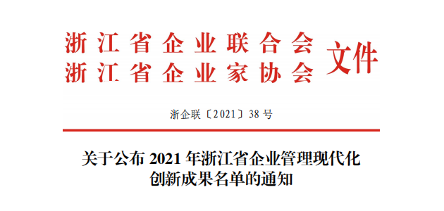 宁兴精密机械集团获“2021年浙江省企业管理现代化创新成果”二等奖2021-10-26
