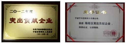 宁兴控股被授予“海曙区突出贡献企业”荣誉称号2013-01-05