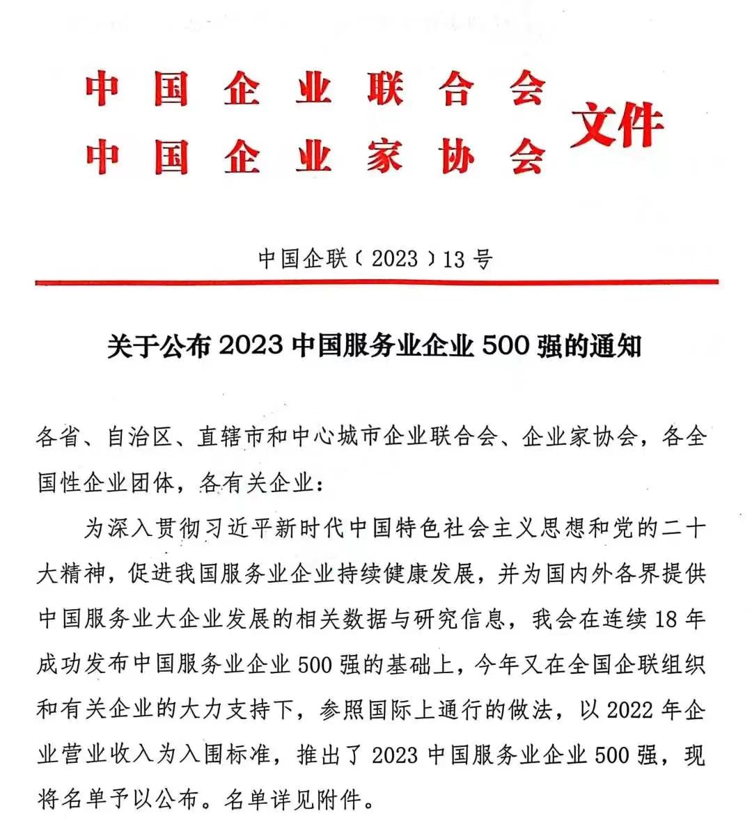 宁兴控股继续入选2023中国服务业企业500强2023-10-06