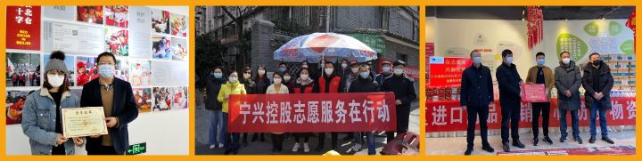 2020年积极参与新冠抗疫捐助,组织下属宁兴优贝、宁兴海鑫等公司火速筹集总价值100多万元防护和消毒用品,第一时间捐赠抗疫一线;宁兴贸易集团积极配合宁波市防控部门、市商务局做好防疫物资进口;开展“抗疫情献爱心”捐款活动,发动集团全体党员为抗疫捐款;积极参与抗疫志愿者活动,到所在社区居民小区帮助一线防疫工作,彰显企业社会责任和宁兴人风采。